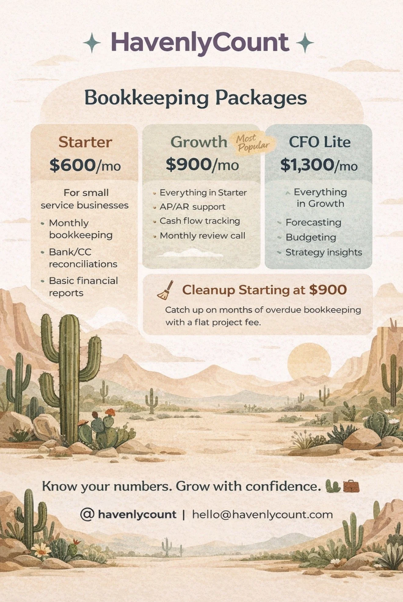 I started HavenlyCount with a simple but powerful mission: to bring peace and clarity to business owners who feel weighed down by financial chaos. Numbers don’t have to be scary — when stewarded well, they can give you the confidence and joy to grow your business with wisdom.